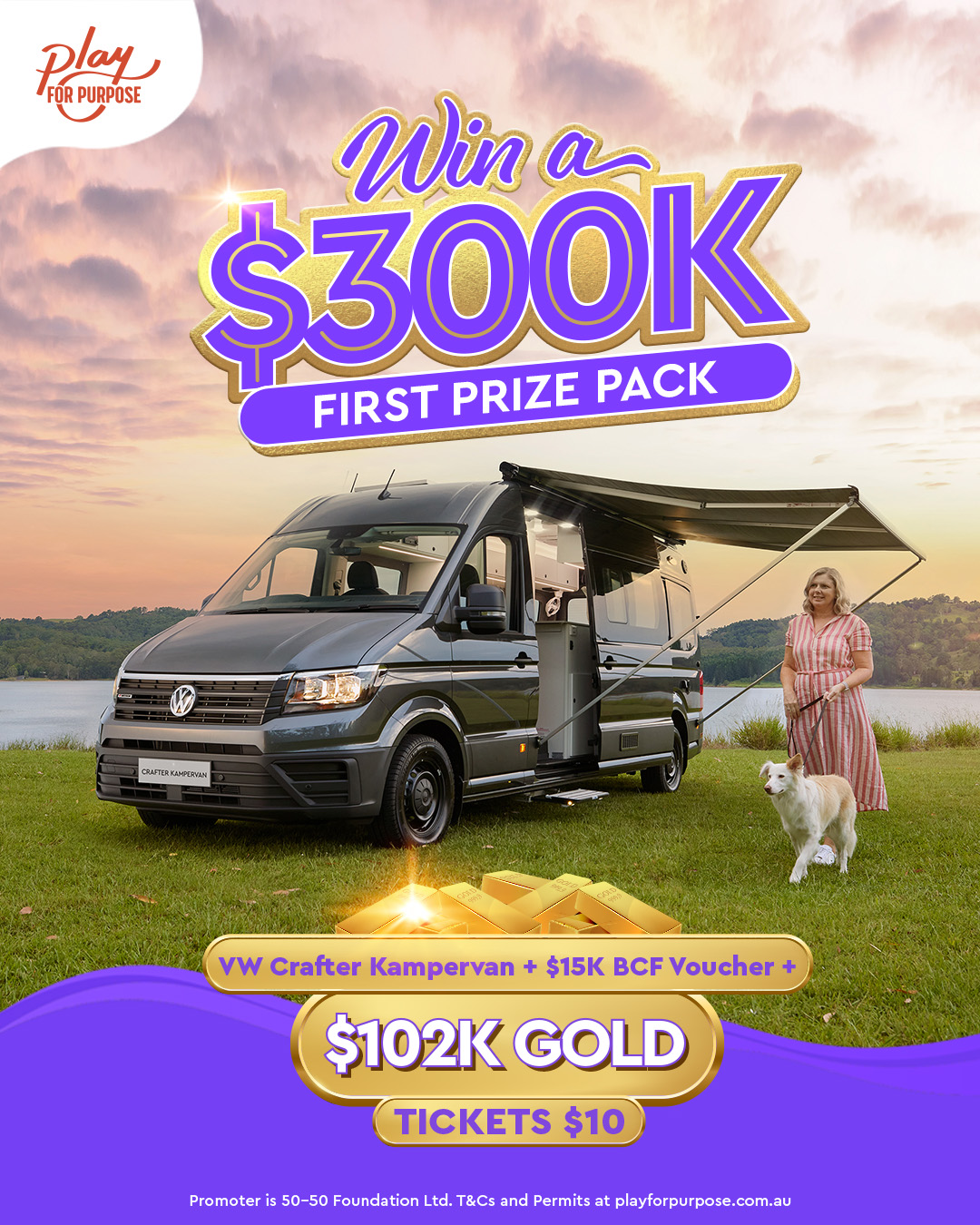 Grab your ticket today for a chance to win the $300,000 first prize pack including a a premium Volkswagen Crafter Kampervan valued at $182,554 PLUS a $15,000 BCF voucher PLUS $102,445 worth of gold bullion and hundreds of other fantastic prizes!