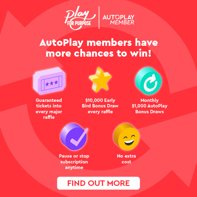Become an AutoPlay member and never miss a draw, PLUS there’s BONUS monthly draws in each raffle.